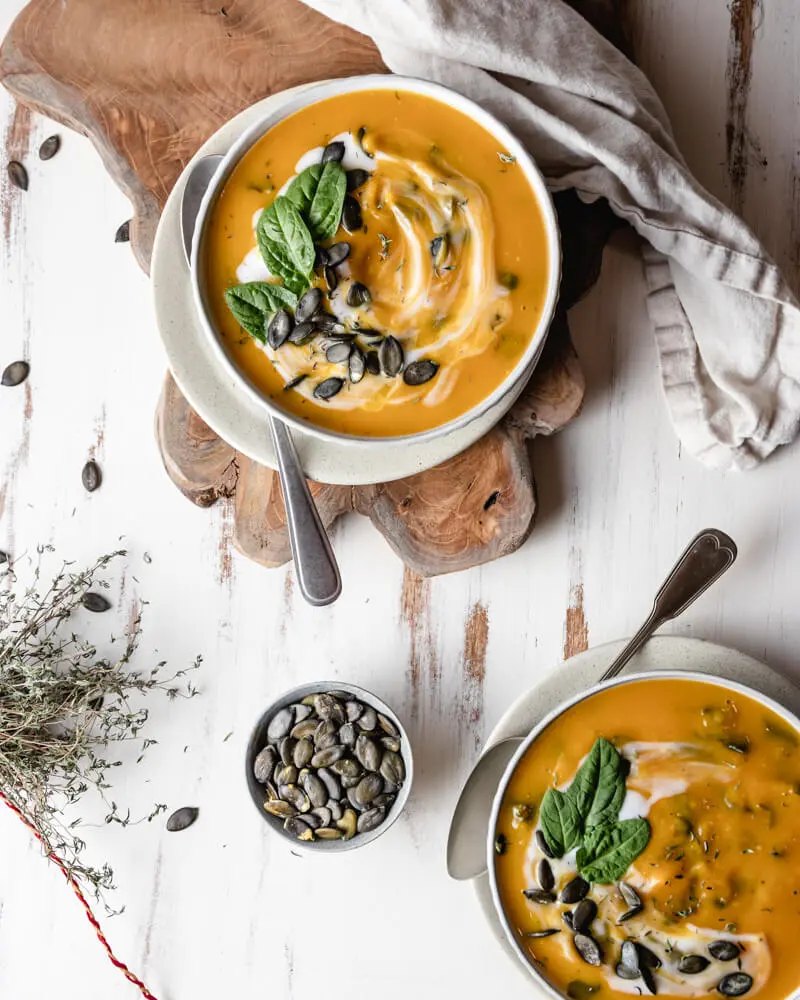 - Sirva decorando com sementes de abóbora e iogurte de coco ou simplesmente com um fio de azeite como disse anteriormente.